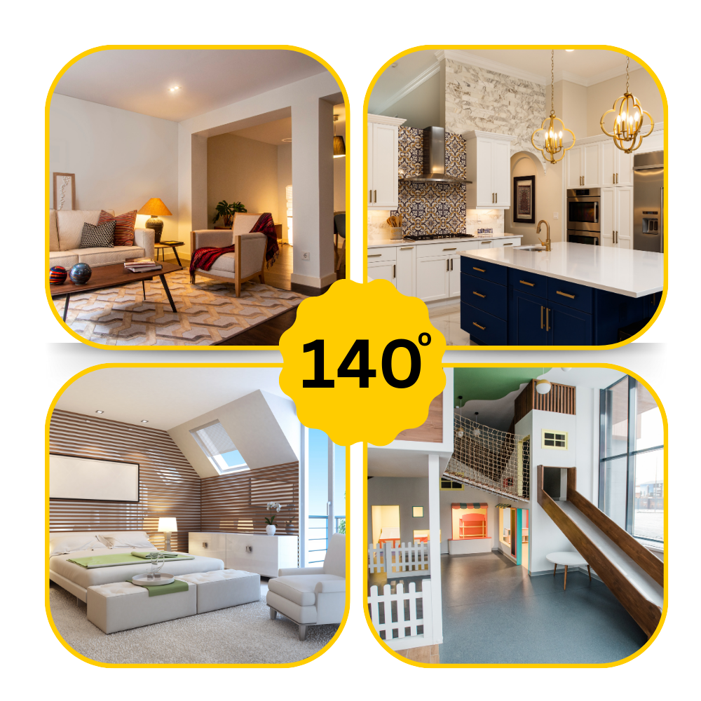 Stellen Sie sicher, dass kein Bereich unbeaufsichtigt bleibt mit dem Weitwinkelbetrieb der drahtlosen 1080P HD Überwachungskamera. Mit einem Sichtfeld von 140° deckt diese Kamera einen größeren Bereich ab als herkömmliche Modelle und eignet sich perfekt für die Überwachung weitläufiger Räume. Egal, ob Sie ein großes Wohnzimmer, einen weitläufigen Garten oder ein komplettes Büro überwachen möchten, der Weitwinkel reduziert tote Winkel und bietet Ihnen eine umfassende Sicherheitslösung. Diese vollständige Abdeckung ist entscheidend für eine sorgfältige Überwachung und gibt Ihnen die Sicherheit, dass Ihr Eigentum gründlich im Blick ist.