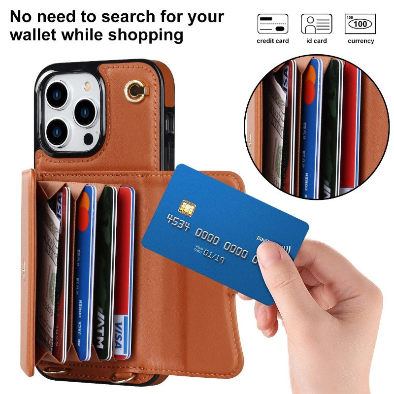 Crossbody Brieftasche aus Leder Handyhülle für iPhone 13 14 11 Pro Max 13 12 Mini 14 Plus Multifunktionale Handgelenkschlaufe-Lanyard-Schutz