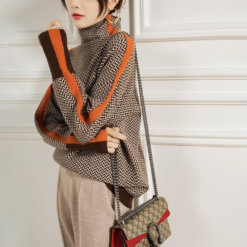 Rollkragenpullover mit kontrastierenden Ärmeln