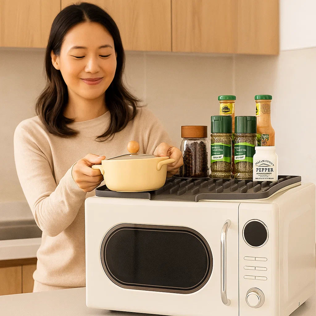 Die Silikontropfmatte bietet nicht nur Funktionalität, sondern lässt sich auch leicht verstauen. Dank des flexiblen Materials kann sie bei Nichtbenutzung schnell aufgerollt oder in einer Schublade verstaut werden, sodass sie immer griffbereit ist.