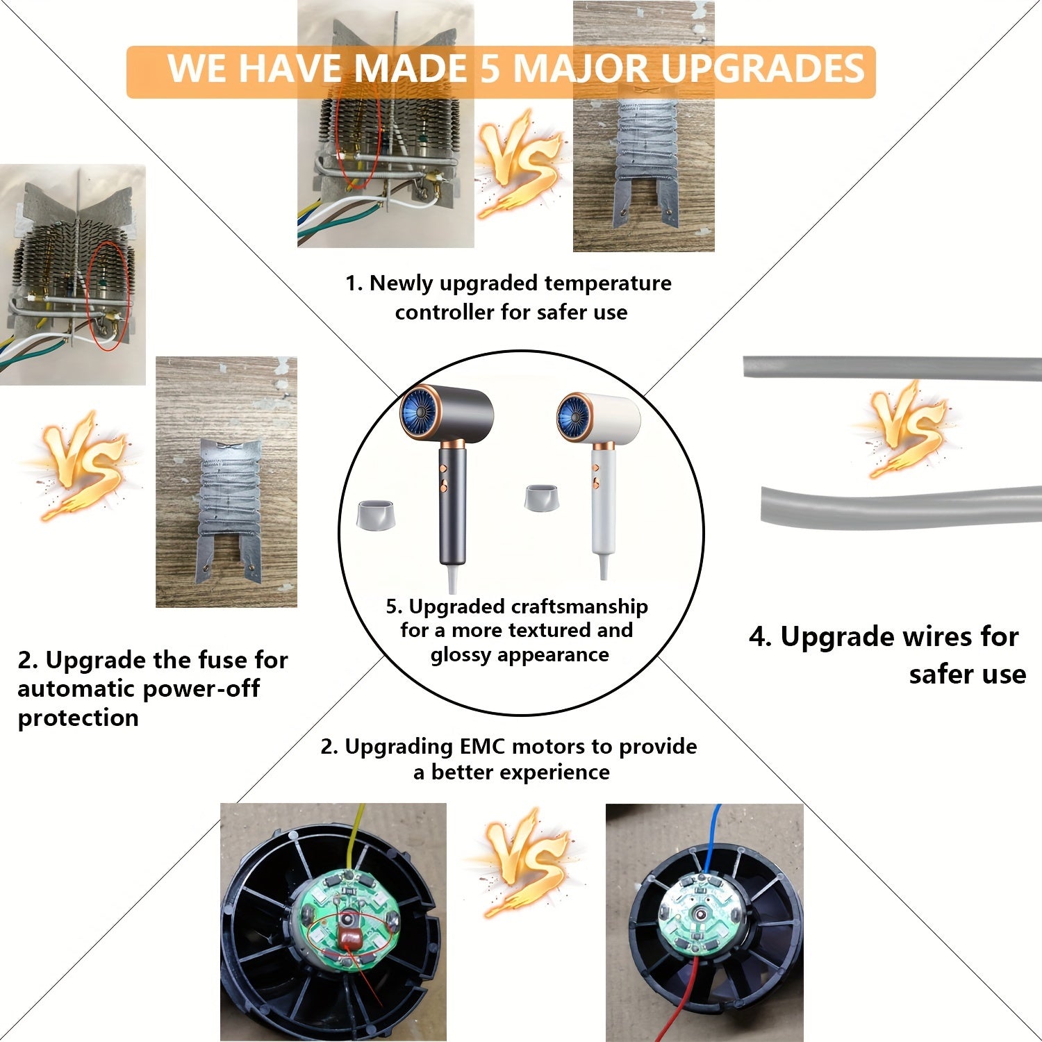 Normale Haartrockner sind oft laut, benötigen lange zum Trocknen und lassen Ihr Haar frizzig zurück. Viele Modelle bieten keine präzisen Aufsätze oder die Möglichkeit, einfach zwischen heißer und kalter Luft zu wechseln, um die Kontrolle über das Styling zu optimieren.