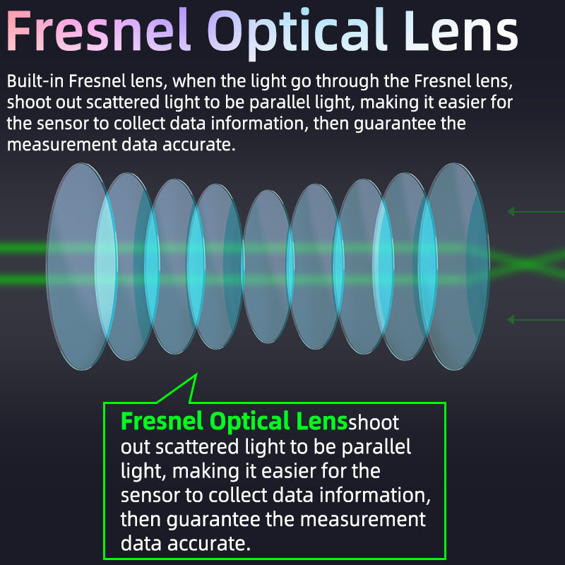 Verbesserte Lichtdurchlässigkeit für genaue Daten. Die integrierte Fresnellinse parallelisiert das streuende Licht beim Durchtritt und ermöglicht es dem Sensor, Daten einfacher zu erfassen und die Genauigkeit der Messdaten zu gewährleisten.