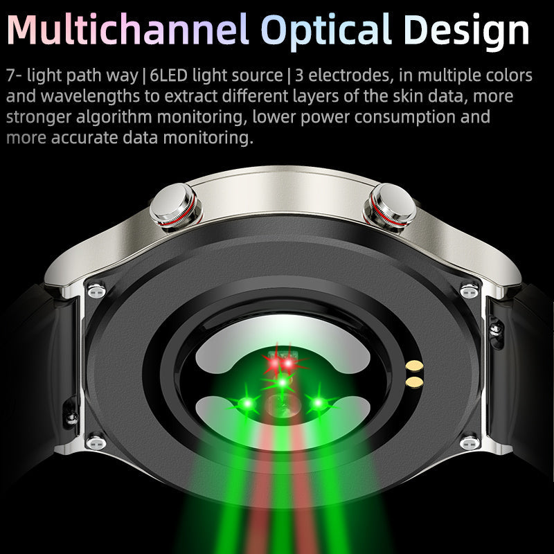 512 Hz ECG-Abtastrate, die präzise I-Leitungs-ECG-Signale erfasst. Aktivieren Sie den Notfallmodus bei Herzproblemen, erfassen und speichern Sie abnormale ECG-Signale zügig, betrachten Sie den Bericht über die App und teilen Sie Ihr ECG.