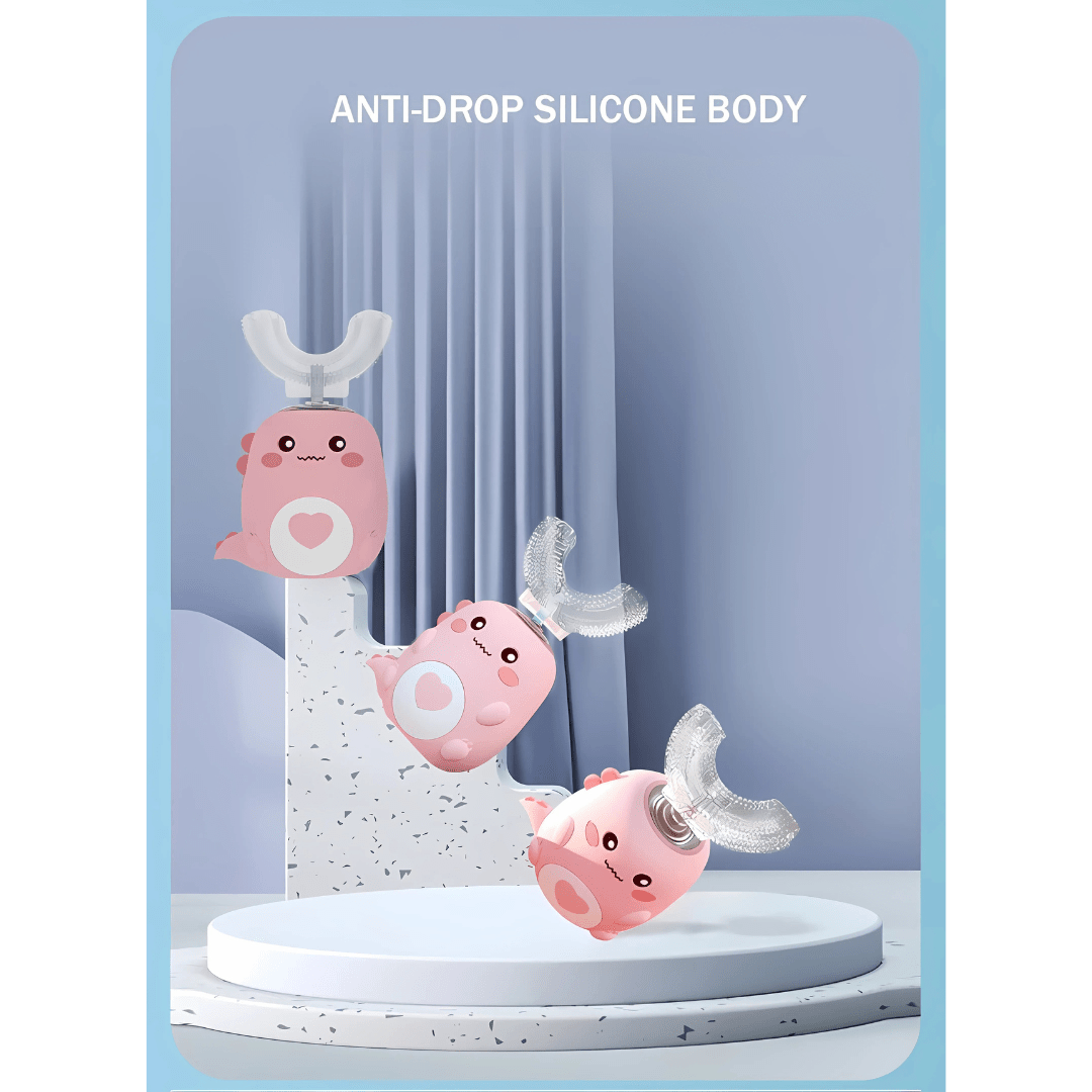 Die Dino Brush verwandelt das tägliche Zähneputzen in ein unterhaltsames Erlebnis. Mit ihrer innovativen 360°-Reinigungstechnologie reinigt sie gründlich jeden Zahn, ohne eine Stelle zu übersehen. Die sanften, lebensmittelechten Borsten gewährleisten eine sichere Pflege für Zähne und Zahnfleisch. Mit drei einstellbaren Geschwindigkeitsstufen passt sich die Zahnbürste den individuellen Bedürfnissen jedes Kindes an. Sie ist vollständig wasserdicht und überzeugt durch ihr kinderfreundliches Dinosaurierdesign, was sie ideal für Kinder im Alter von 2 bis 12 Jahren macht.