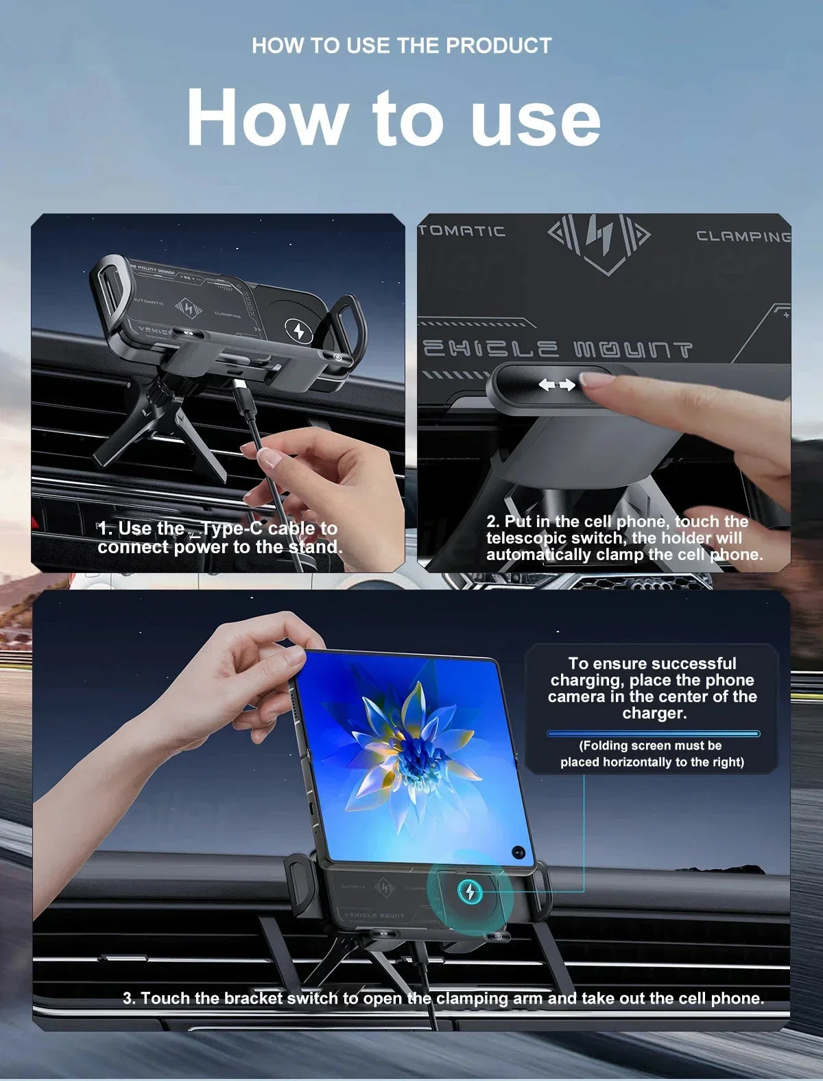 ● Mehrfachschutz: Das Produkt besteht aus ABS+PC-Materialien und elektropoliertem + Aluminiumblech-Hardware. Es ist nicht nur schön und elegant, sondern bietet auch mehrere Schutzfunktionen wie Stoßabsorption, Windwiderstand und vibrationsfest, um sicheres Laden Ihres Telefons zu gewährleisten.