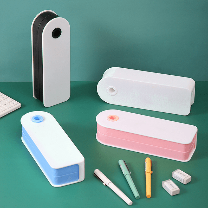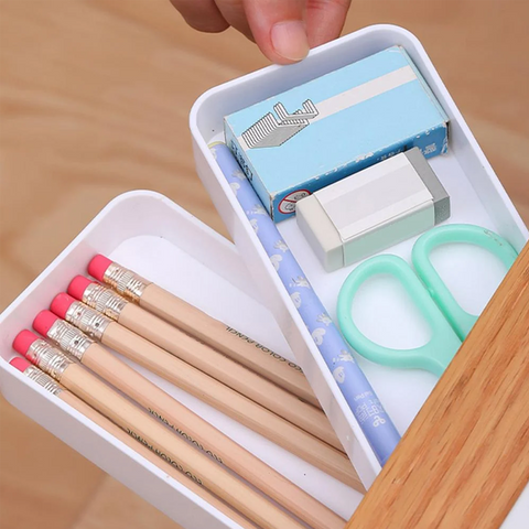 Diese Aufbewahrungsbox ist mit einem doppelten Design versehen und hat ausreichend Platz, um Bürobedarf zu organisieren und aufzubewahren.