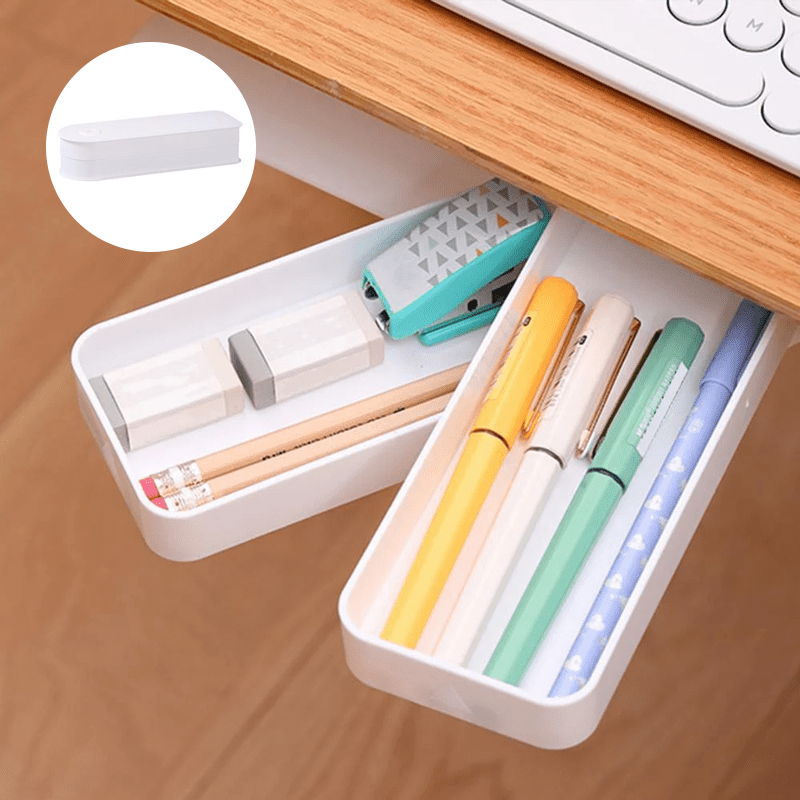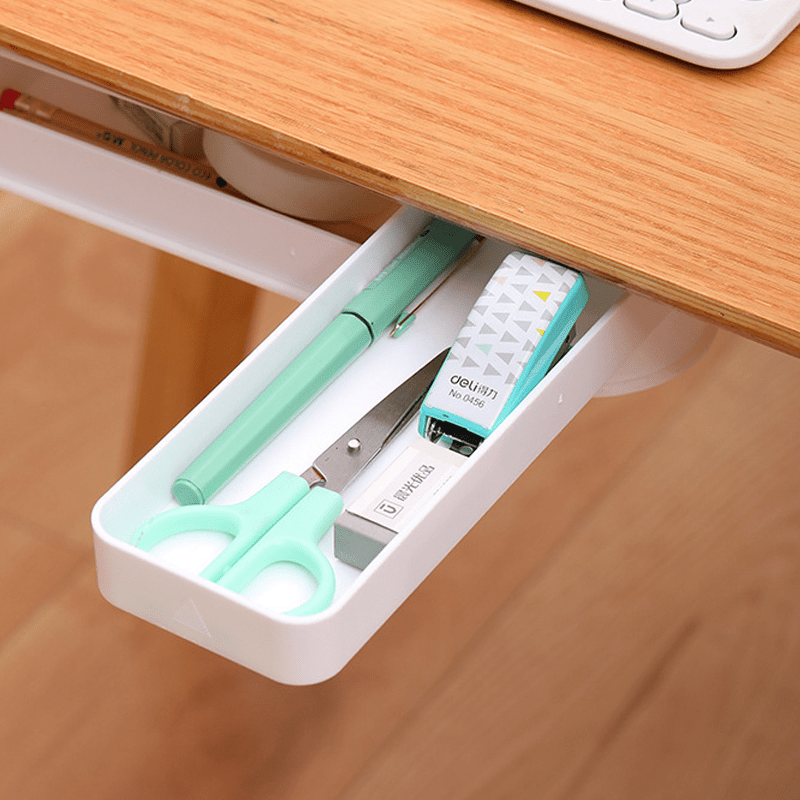 • Die Installation ist unkompliziert, da sie mit selbstklebenden Aufklebern unter den Schreibtisch angebracht werden kann. Diese Aufbewahrungsbox ist nicht nur leicht zu montieren, sondern auch platzsparend.