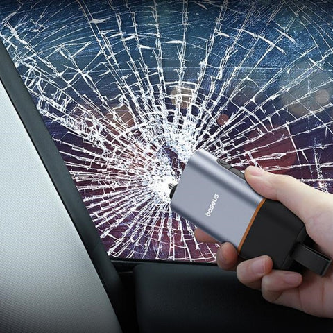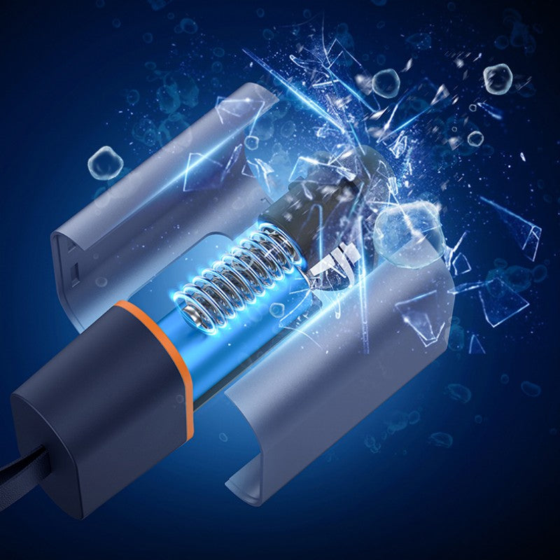 Der faltbare Hammerschädel zerschlägt Glas mit nur einem Schlag.