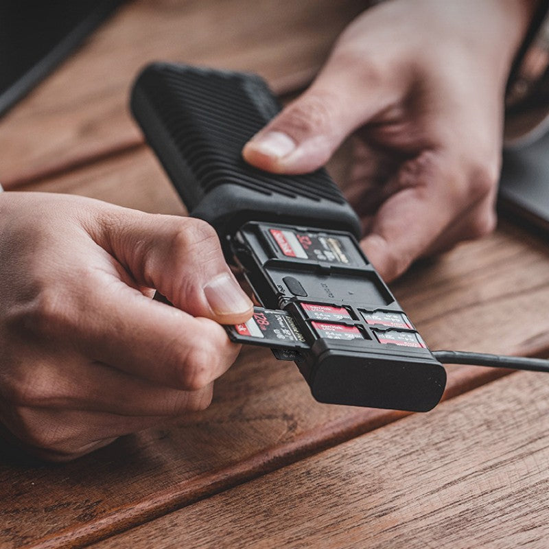 Mit Doppelschächten für SD- und TF-Karten ausgestattet, ermöglicht er den gleichzeitigen Zugriff auf beide Kartenformate.