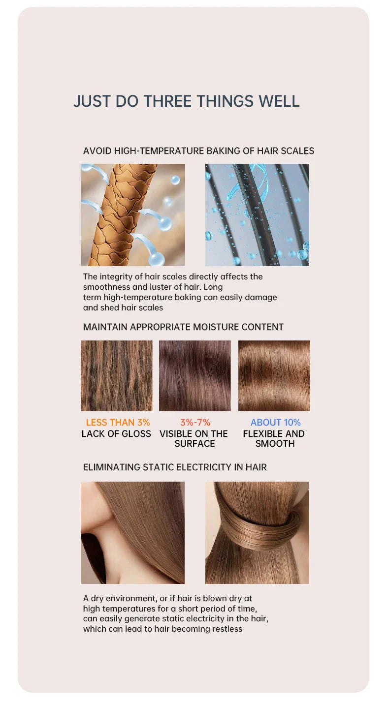 Trockene und beanspruchte Haare nach dem Föhnen? Das gehört der Vergangenheit an! Die innovative Ionentechnologie beseitigt statische Elektrizität und speichert die Feuchtigkeit in deinem Haar. So erhältst du glänzendes, gesund aussehendes Haar – ganz ohne Frizz.