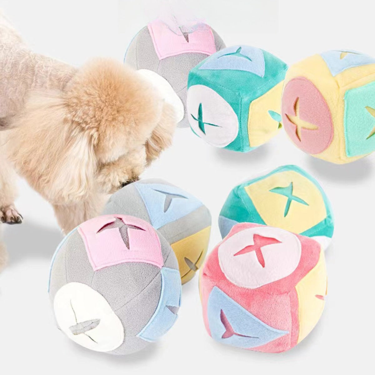 Sandsberg | Hund schnüffelt Ball Futtersuche leckt Spielzeugball