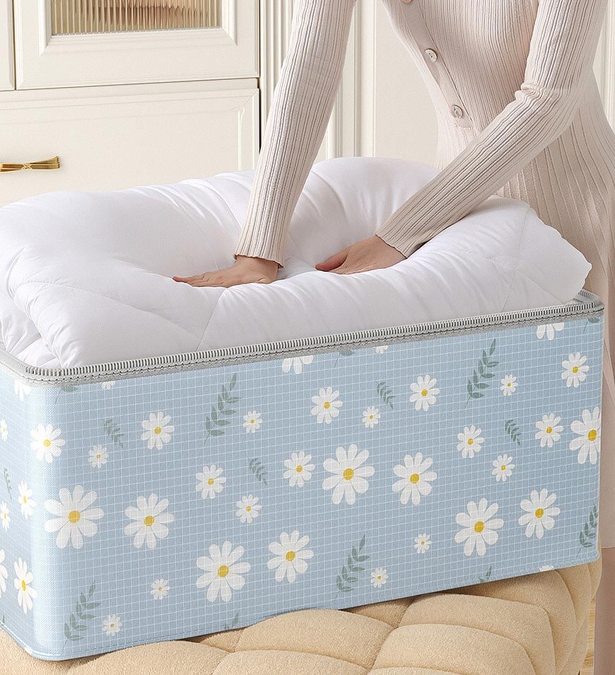 • Große Kapazität:Diese Aufbewahrungstasche hat Lage Kapazität, 60L große Größe, sehr geeignet für die Speicherung Ihrer Steppdecken, Decken, Bettdecken, Kinderkleidung, Baby-Spielzeug oder andere saisonale Kleidung.