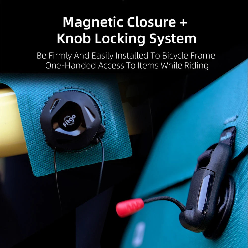 ● Knopfverschluss: Die Tasche wird mit einem Knopfkabelverschluss am Oberrohr befestigt, was sicherer ist und sich leicht zerlegen lässt.