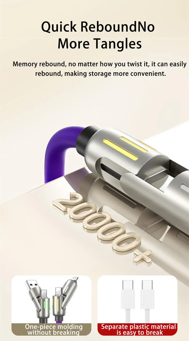 ● Das multifunktionale 4-in-1 Schnelllade-Datenkabel ist die ultimative Lösung für all Ihre Lade- und Datenübertragungsbedürfnisse.
