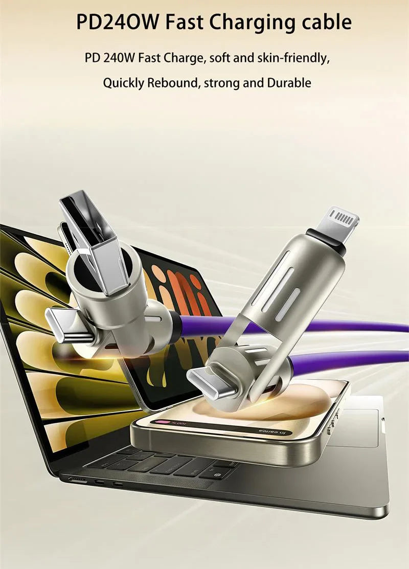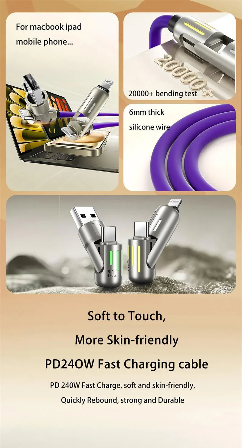 ● Typ: 4 in 1 Ladekabel 240W, Silikon-Kabel, Schnelllade-Kabel Typ C