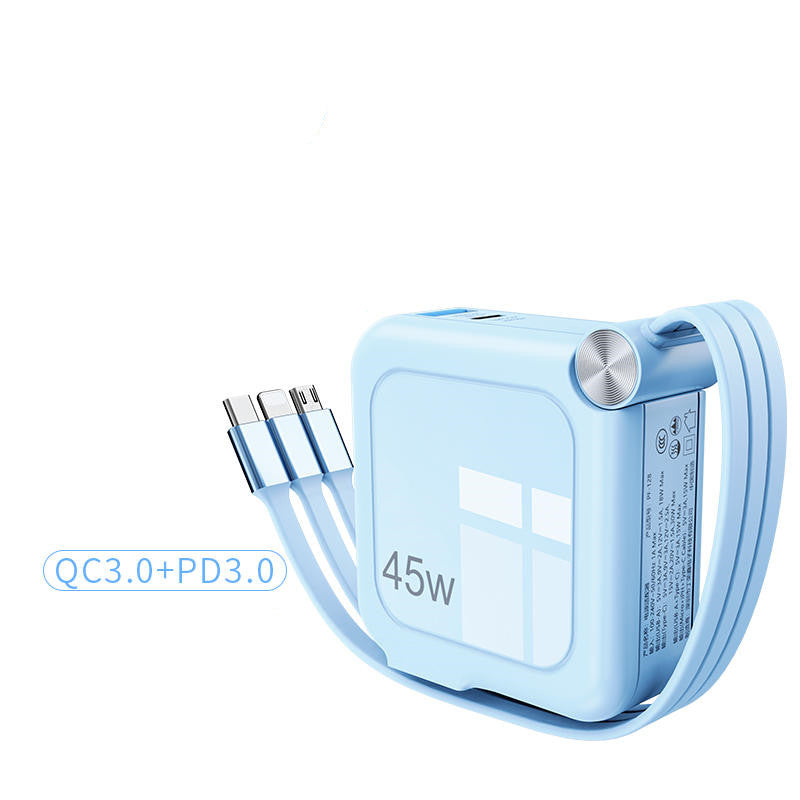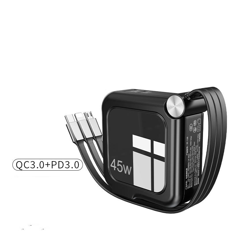 Mit integriertem, ausziehbarem Ladekabel.