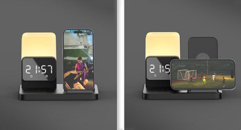 Es kann auch als Halter für Ihr Handy eingesetzt werden, sodass Sie Ihr Gerät sowohl im Hoch- als auch im Querformat aufladen können.