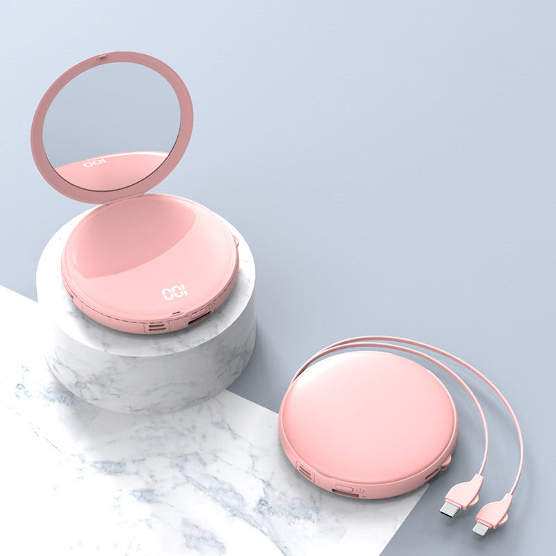 Dieses Set aus einem Make-up-Spiegel und einer Powerbank bietet eine praktische Lösung, ideal für Reisen und einfache Aufbewahrung.