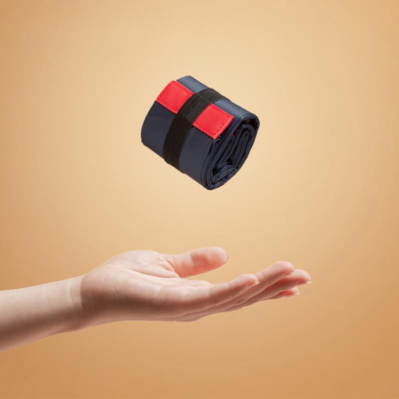 Nehmen Sie diese Tasche überallhin mit. Dank ihrer ultrakompakten Form kann die Tasche als kleine Rolle in Ihrer Handtasche verstaut werden. Entfalten Sie diese Rolle zu einer geräumigen Einkaufstasche, um alles mit nach Hause zu nehmen und im Laden nichts zurücklassen zu müssen.