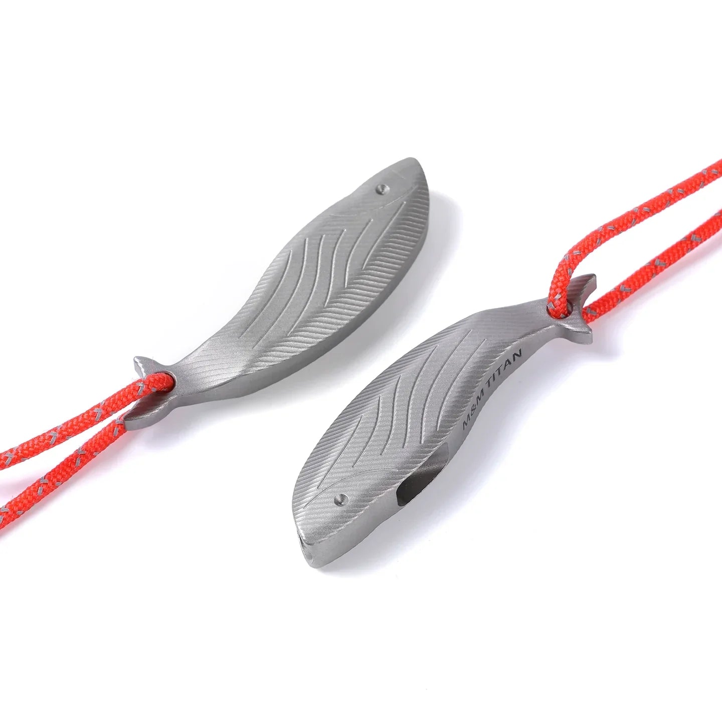 Diese ansprechende, fischdesignte Survival-Pfeife besteht aus robustem Titan und ist ideal für Outdoor-Abenteuer wie Wandern und Zelten. Ihre kompakte und leichte Bauweise sowie der durchdringende Klang stellen sicher, dass Sie in kritischen Situationen gehört werden.