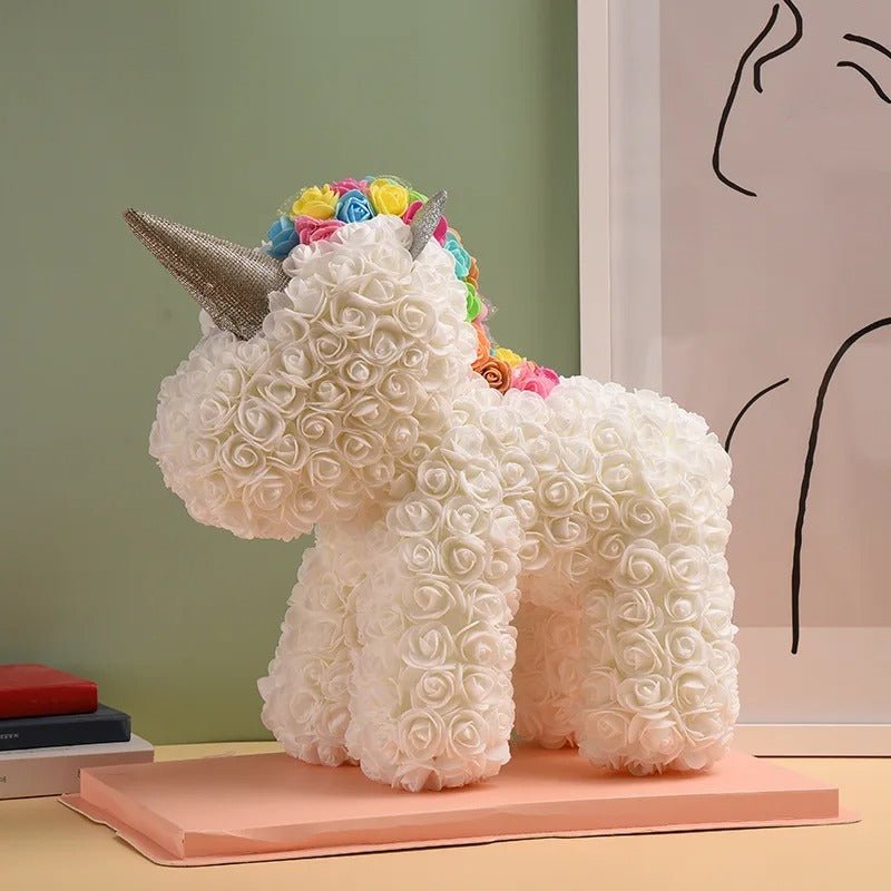 Wir stellen Ihnen unser Rose Unicorn vor, eine atemberaubende Komposition aus über 500 PE immerwährenden Blumen. Dieses umweltfreundliche Kunstwerk symbolisiert nicht nur Schönheit; es ist auch ein dauerhaftes Zeichen für Zuneigung und Leidenschaft.