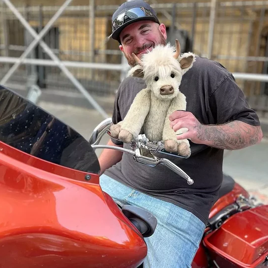 Diese wunderschöne Hochlandkuh vereint schöne Merkmale mit feiner Handwerkskunst. Sie verfügt über drahtige Ohren, traditionelle Schnappgelenke, weiches, samtiges Alpaka-Fell und von Hand gefertigte Hörner aus Polymerton. Hamish hat ein charmantes Geheimnis, das seinen Reiz erhöht: Wenn Sie seinen rechten Fuß drücken, macht er ein beruhigendes "Muu" Geräusch, das Sie auf eine friedliche Wiese aufs Land entführt. Wunderschöne florale Dekorationen, die für Wärme und Freundschaft stehen, schmücken jede Kuh. Diese braunen und weißen Hochlandkühe sind auf Bestellung gefertigt, und jede ist aufgrund kleiner Variationen etwas Besonderes für Sie.