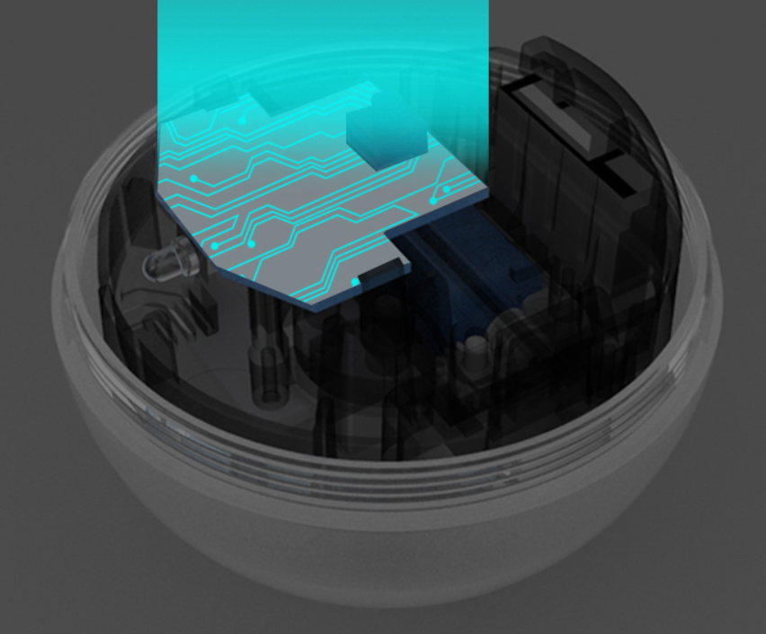 Der Ball verfügt über einen Aktivierungsknopf, der durch einfaches Antippen betätigt werden kann, während ein längeres Drücken den Betriebsmodus wechselt.