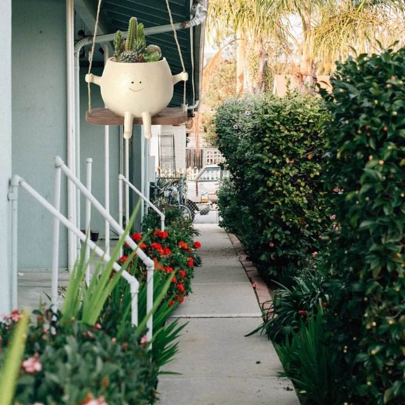 Der Swing Face Hanging Planter bereichert Ihr Zuhause oder Ihren Garten mit Freude. Dieser charmante Sukkulenten-Topf aus Resin, der sowohl für Innen- als auch für Außenbereiche geeignet ist, vereint kreatives Design mit funktionaler Nutzung und ist ein perfektes dekoratives Element für jeden Pflanzenfreund. Er ist so konzipiert, dass er verschiedenen Wetterbedingungen standhält, wodurch er besonders langlebig ist und sich auch hervorragend als Geschenk für Freunde und Familie eignet.