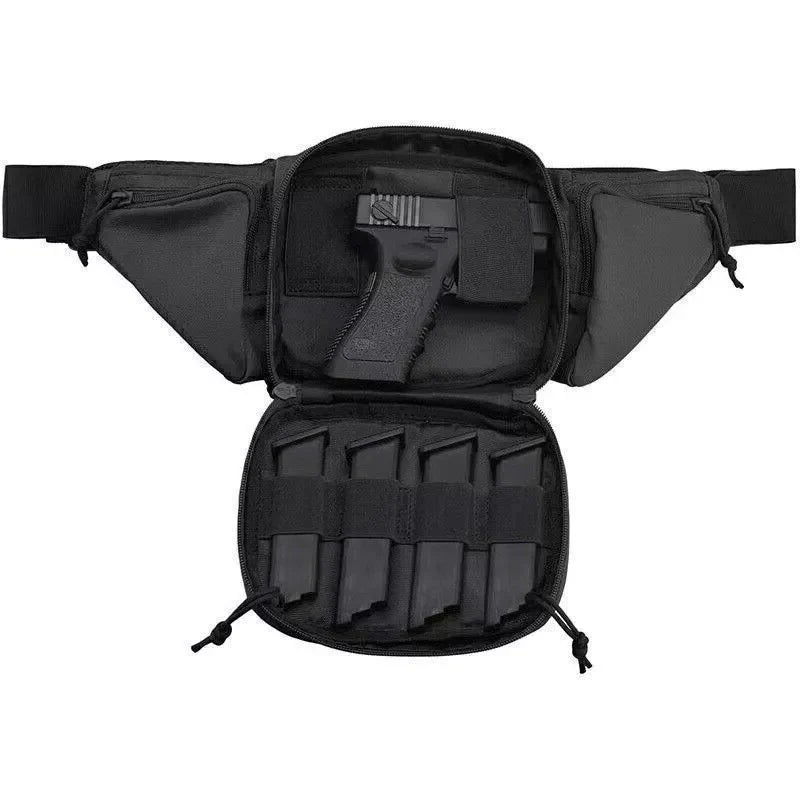 Wenn es um eine zuverlässige und langlebige Möglichkeit geht, Ihre Waffe zu tragen, bietet dieses verdeckte Tragetasche Fanny Pack Holster Taktische Pistolen-Taschenmesser eine hilfreiche Lösung für Ihre täglichen Anforderungen. Da es aus hochwertigen Materialien wie Nylon und hochdichtem Oxford-Stoff gefertigt ist, die eine lange Lebensdauer, Wetterbeständigkeit und Korrosionsschutz gewährleisten, ist dieses Holster ideal für eine Reihe von Outdoor-Aktivitäten. Diese multifunktionale Tasche ist geräumig genug, um zusätzliche kleine Gegenstände zu halten, sodass Sie wichtige Dinge ohne Sorgen um Haltbarkeit oder Bequemlichkeit tragen können.