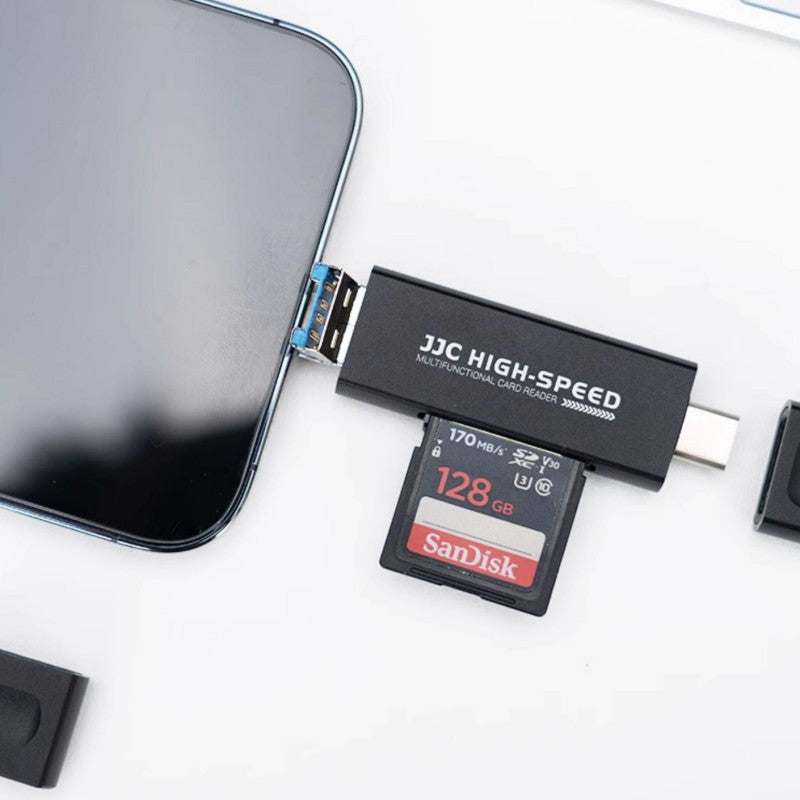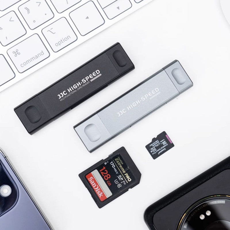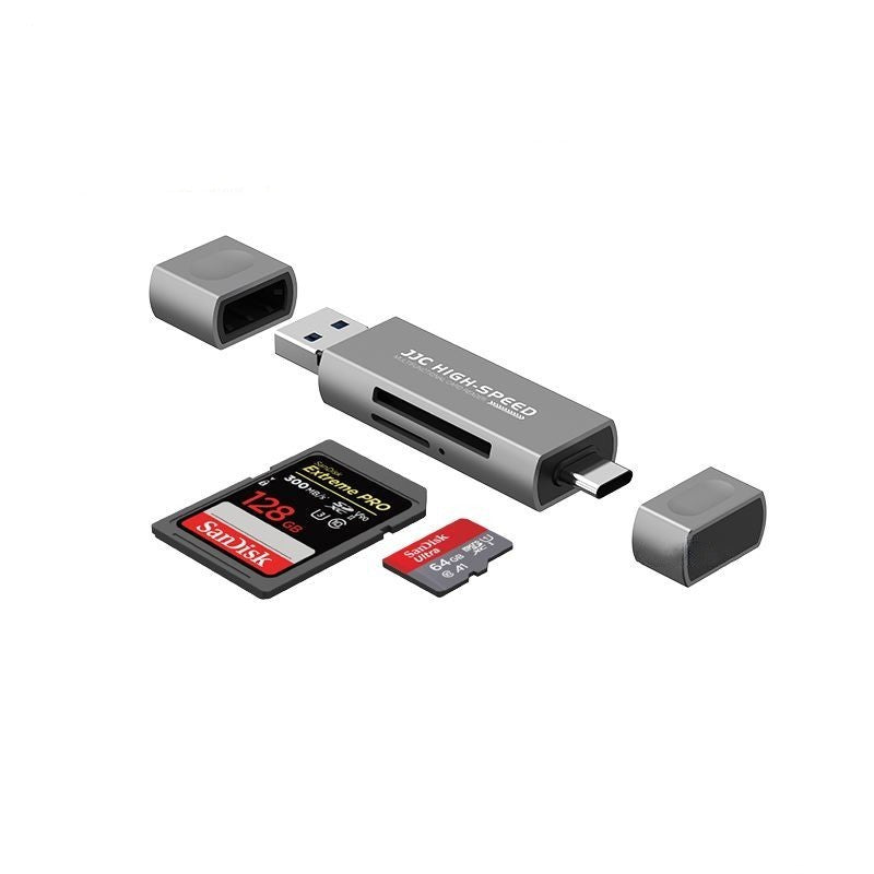 Dieser vielseitige Kartenleser bietet drei Ausgänge und zwei Steckplätze für Karten.