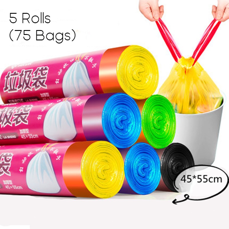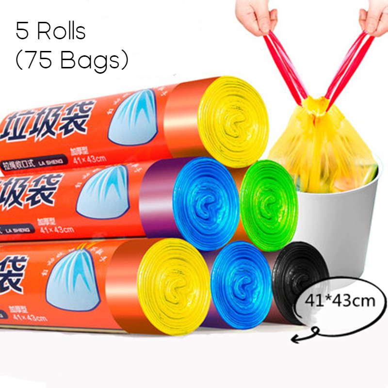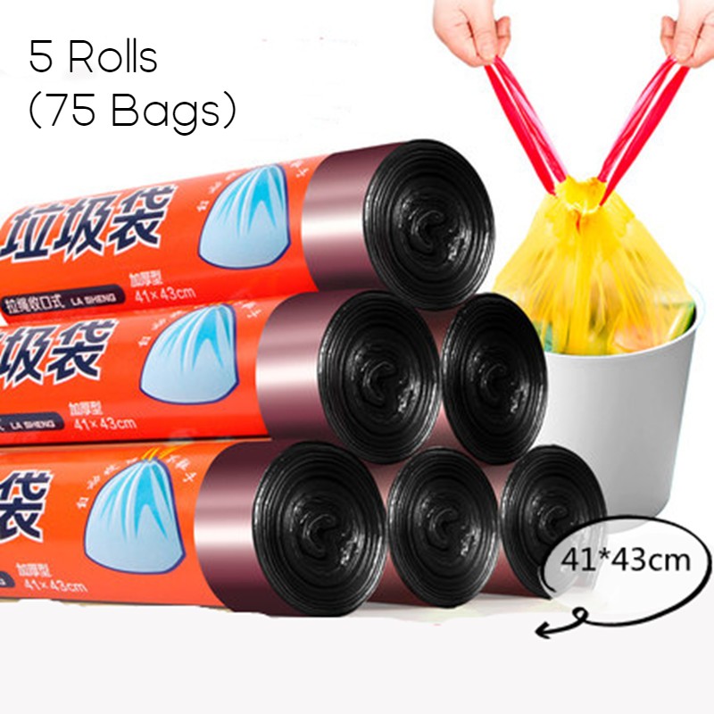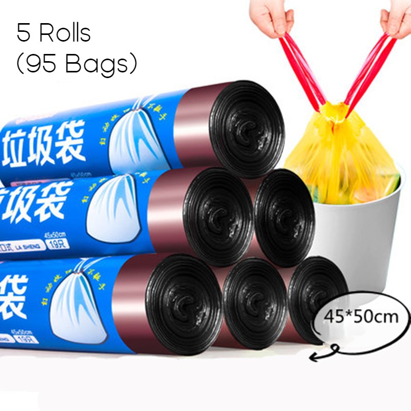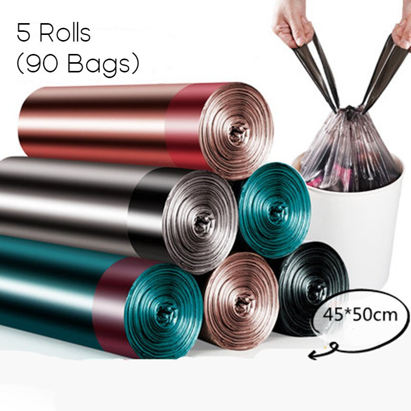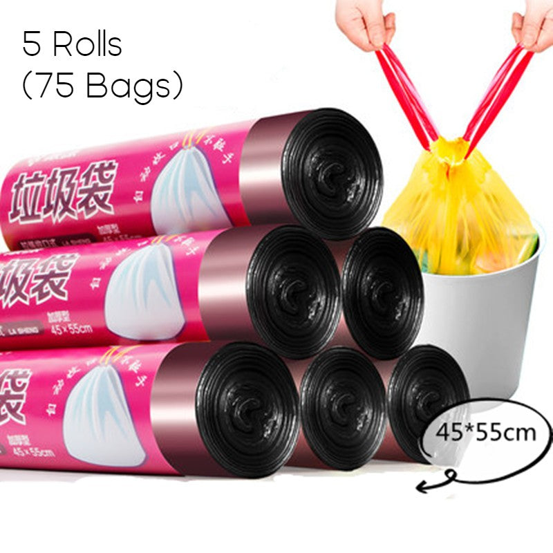 Die widerstandsfähigen Zugbänder sorgen dafür, dass die Tüte sicher geschlossen bleibt und erleichtern die Müllentsorgung.