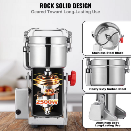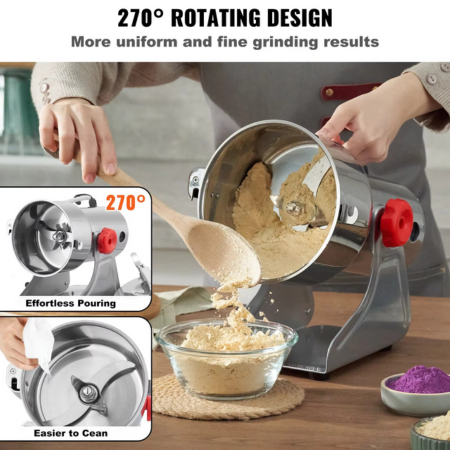 Stellen Sie sich vor... Sie investieren weniger Zeit und Mühe, um große Mengen an Körnern und Gewürzen auf die perfekte, gleichmäßige Größe zu mahlen. Kein manuelles Mahlen mehr; unsere leistungsstarke elektrische Mühle erledigt die Arbeit schnell und problemlos für Sie.