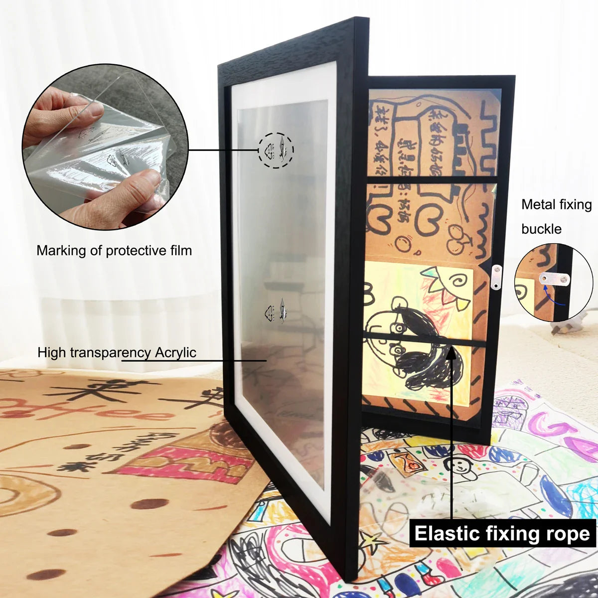 ● Material: Holzrahmen mit bleifreier, temperierter, bruchfester Glasplatte, die einen klaren Blick auf Ihr Kunstwerk ermöglicht. Das Glas wurde getestet, um Bruch und Schäden standzuhalten.