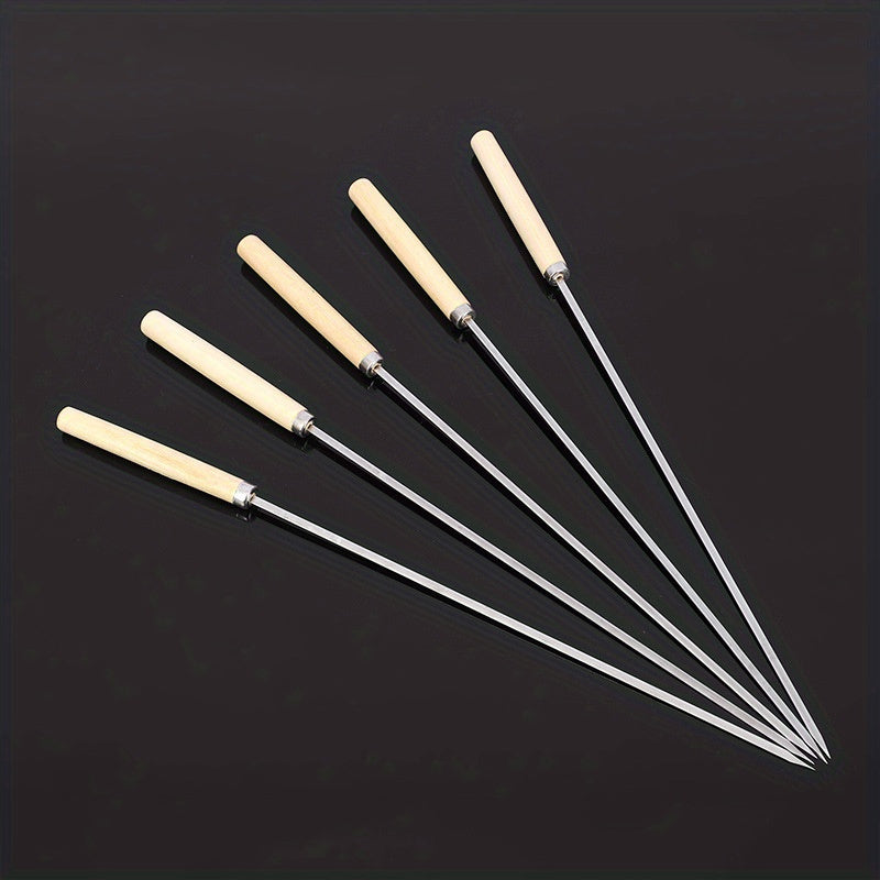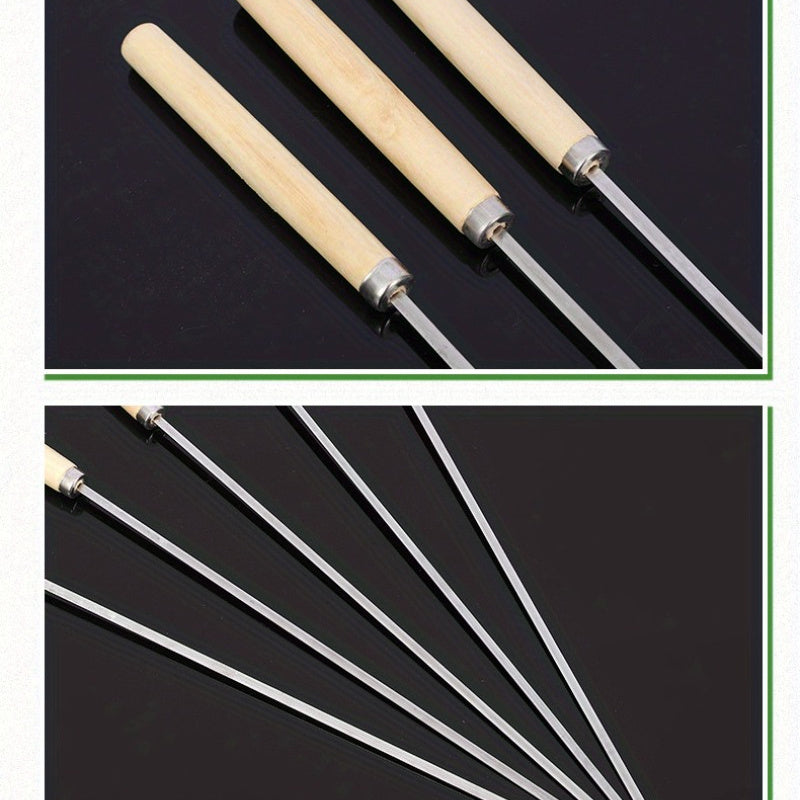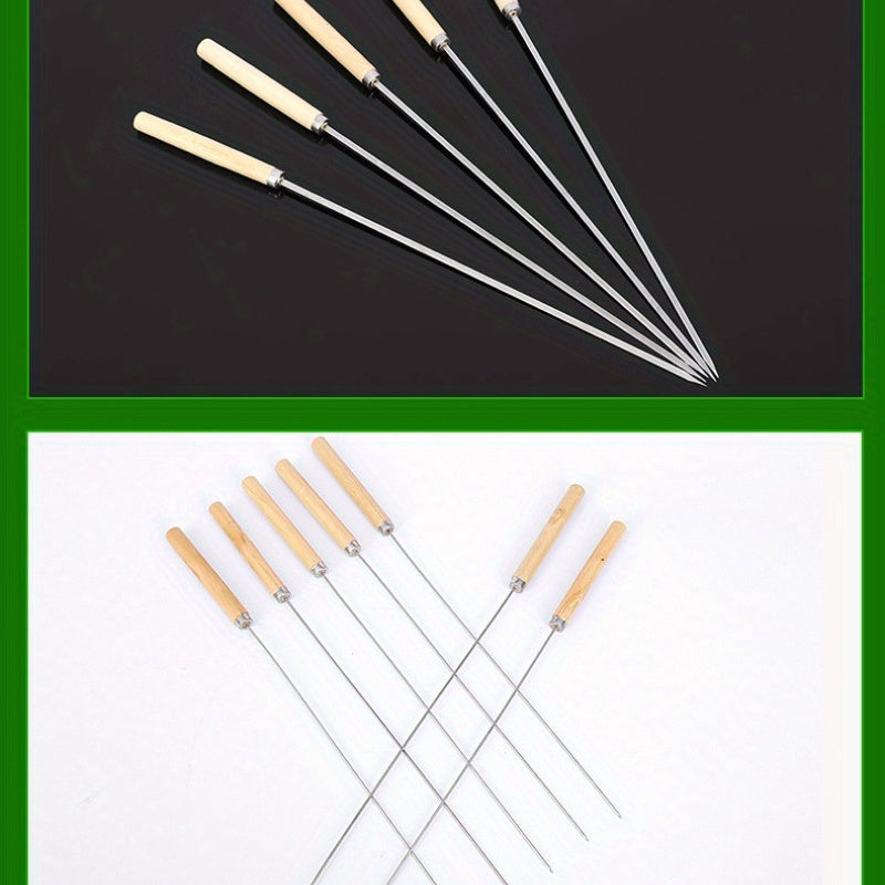 10 Stück hochwertige Edelstahl BBQ-Spieße mit Holzgriff - Perfekt für Sommerfeiern und Familienanlässe!