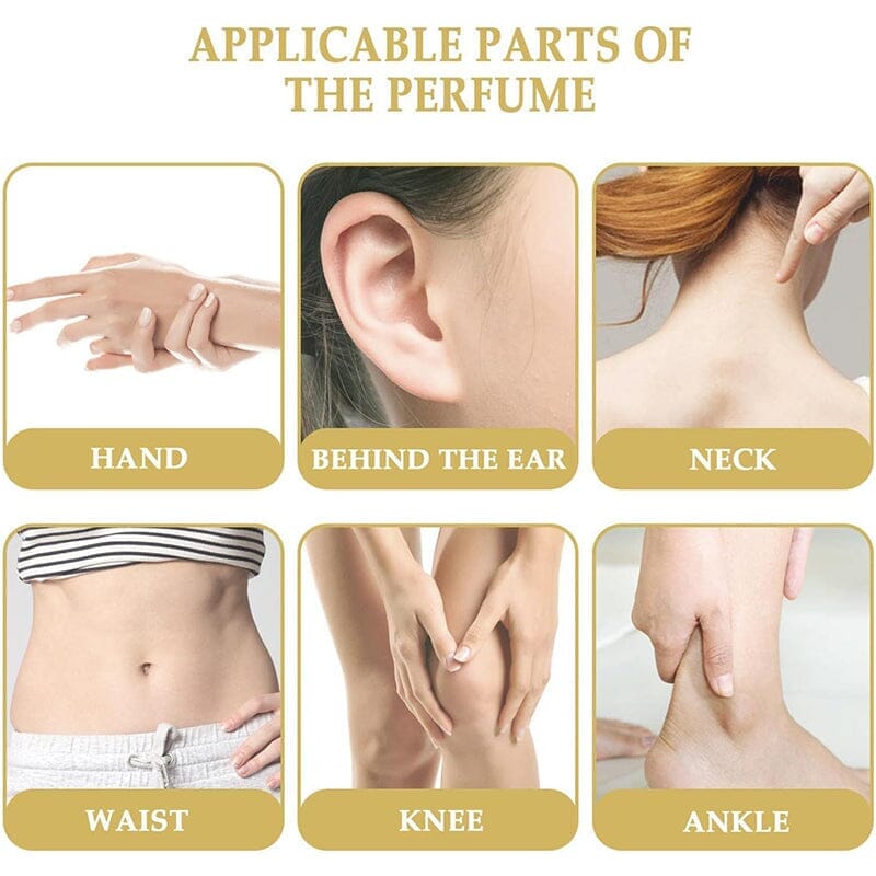• Sprayen Sie es wie ein normales Parfüm auf. Für die besten Ergebnisse tragen Sie es auf den Pulsstellen wie hinter den Ohren, an den Handgelenken und entlang des Kieferknochens auf.