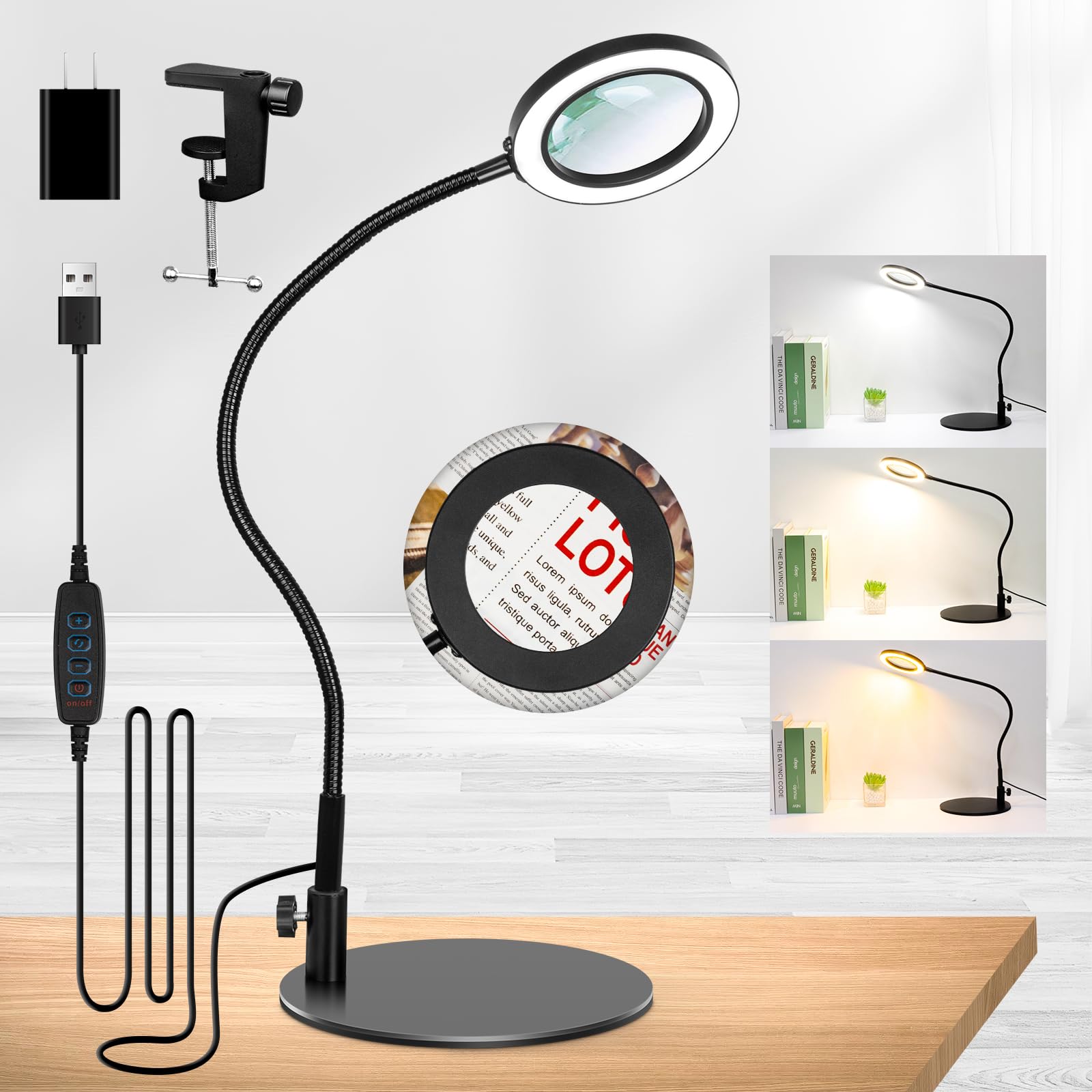 Sandsberg | Kmdes 10x Vergrößerungsglas mit Licht und Ständer, 2-in-1 Vergrößerungsleuchte mit Licht, 3 Farben & 10 Helligkeitsstufen LED-beleuchtetes Vergrößerungsglas freihändig für Hobby Bastelarbeiten verlängerter Gänsekopflicht