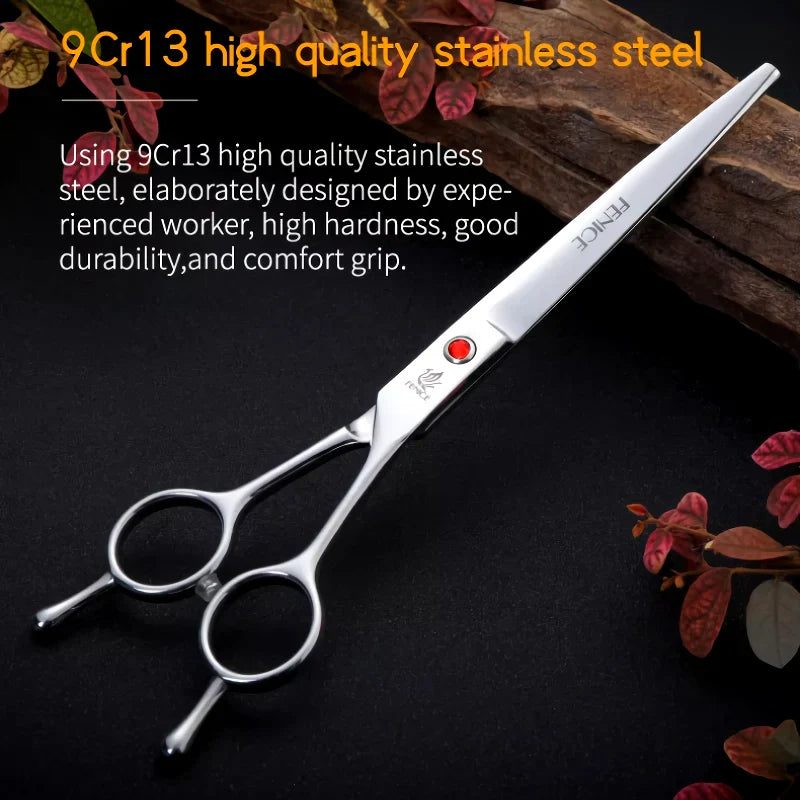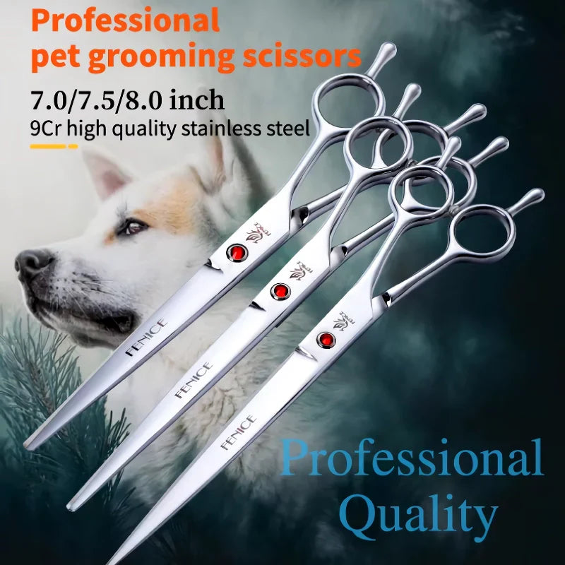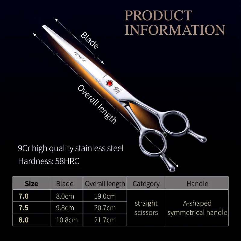Verbessern Sie Ihre Fähigkeiten in der Tierpflege mit unseren hochwertigen Haarschneidemaschinen, die in den Größen 7.0", 7.5" und 8.0" erhältlich sind. Diese geraden Schneidewerkzeuge sind so konzipiert, dass sie Ihnen Präzision und Kontrolle bieten, sodass jeder Schnitt und jede Trimmbehandlung ordentlich und professionell aussieht. Gefertigt aus hochwertigem Edelstahl, garantieren diese Schneidemaschinen eine herausragende Langlebigkeit und Schärfe, die zahlreichen Pflegeeinsätzen standhält. Unabhängig davon, ob Sie ein professioneller Hundefriseur oder ein Tierbesitzer sind, der seine Tiere gerne zu Hause pflegt, werden Sie mit diesen Schneidemaschinen makellose Ergebnisse erzielen. Das ergonomische Design sorgt für eine einfache und komfortable Handhabung, wodurch Ermüdung der Hände während längerer Pflegesitzungen verringert wird. Diese Schneidemaschinen sind perfekt für Hunde, Katzen und andere pelzige Begleiter und stellen das ideale Werkzeug zum Trimmen des Körperhaars, zum Modellieren des Fells Ihrer Tiere und für präzise, gerade Schnitte dar. Investieren Sie in ein Pflegewerkzeug, das Ihnen das nötige Vertrauen gibt, um Ihr Haustier großartig aussehen zu lassen.